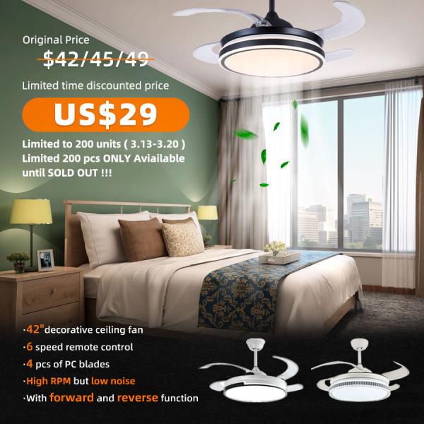 1. odern invisible fan chandelier: Fan and chandelier combined into one with remote control, automatic telescopic fan blade, and LED lamp beads.